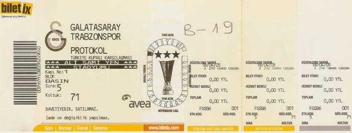18 NİSAN 2005 TARİHLİ GALATASARAY - TRABZONSPOR KUPA MAÇI BİLETİ..., 6 ay önce satışa sunulmuştur.