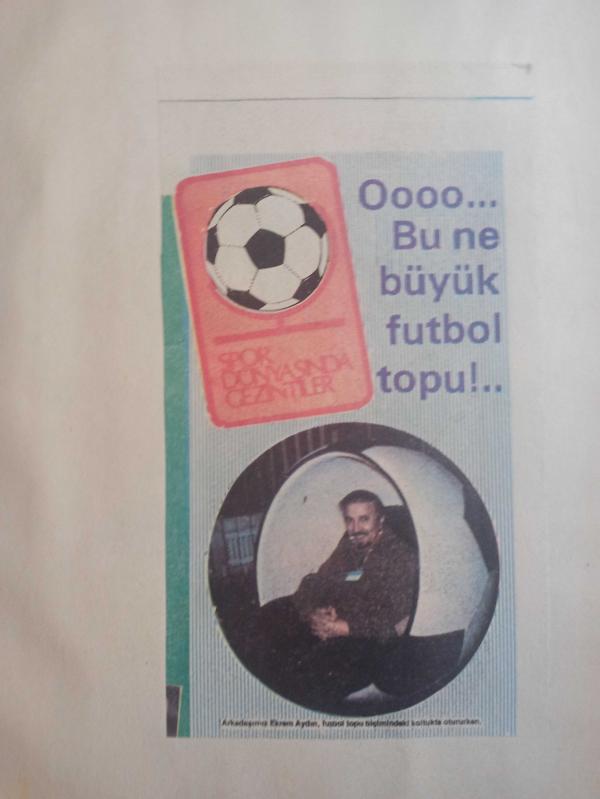 18 Nisan 1982 - Oooo... Bu ne büyük futbol topu!... - Arkadaşımız Ekrem Aydın, futbol topu biçimindeki koltukta otururken görüntüsü fotoğraf ve haberi - Tek Yaprak Arkalı Önlüdür adlı eser, Kitap > Süreli Yayınlar > Dergiler > Spor kategorisinde İkinci El olarak satıştadır.