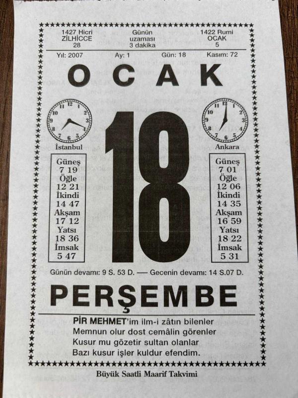 18 OCAK 2007 - TAKVİM YAPRAĞI - DOĞUM GÜNÜ HEDİYESİ - BÜYÜK SAATLİ MAARİF TAKVİMİ - YASERİ ASIM ARSOY - BESTECİ YASERİ ASIM ARSOY'UN VEFATI - ÇIRAĞAN SARAYI YANDI - GÖKSEL ARSOY, en son 8 ay önce güncellenmiştir.