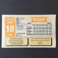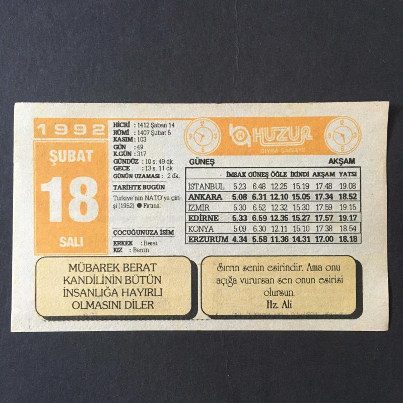 18 ŞUBAT 1992 -TAKVİM YAPRAĞI-DOĞUM GÜNÜ HEDİYESİ-HUZUR TAKVİMİ,TÜRKİYENİN NATOYA GİRİŞİ 1952,FIRTINA,ÇOCUĞUNUZA İSİM,BERAT KANDİLİ,İNSAN VE YÜKÜ, en son 8 ay önce güncellenmiştir.