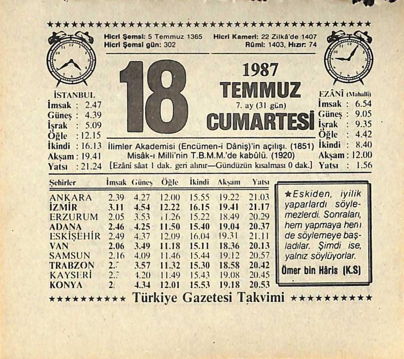 18 Temmuz 1987 Takvim Yaprağı - Doğum Günü Hediyesi EFMN13830, en son 21 gün önce güncellenmiştir.