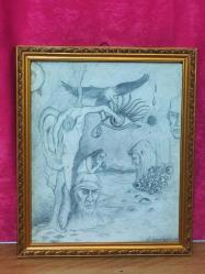 18261-AHŞAP ÇERÇEVE İÇERSİNDE Ş.SERKAN UYSAL 97 İMZALI KARA KALEM ÇALIŞMASI