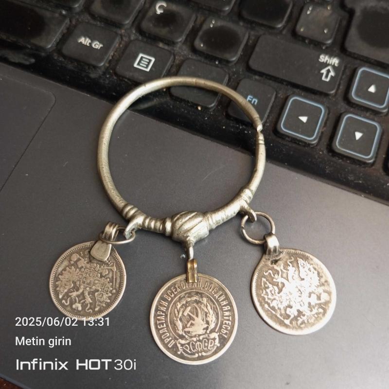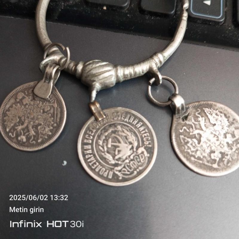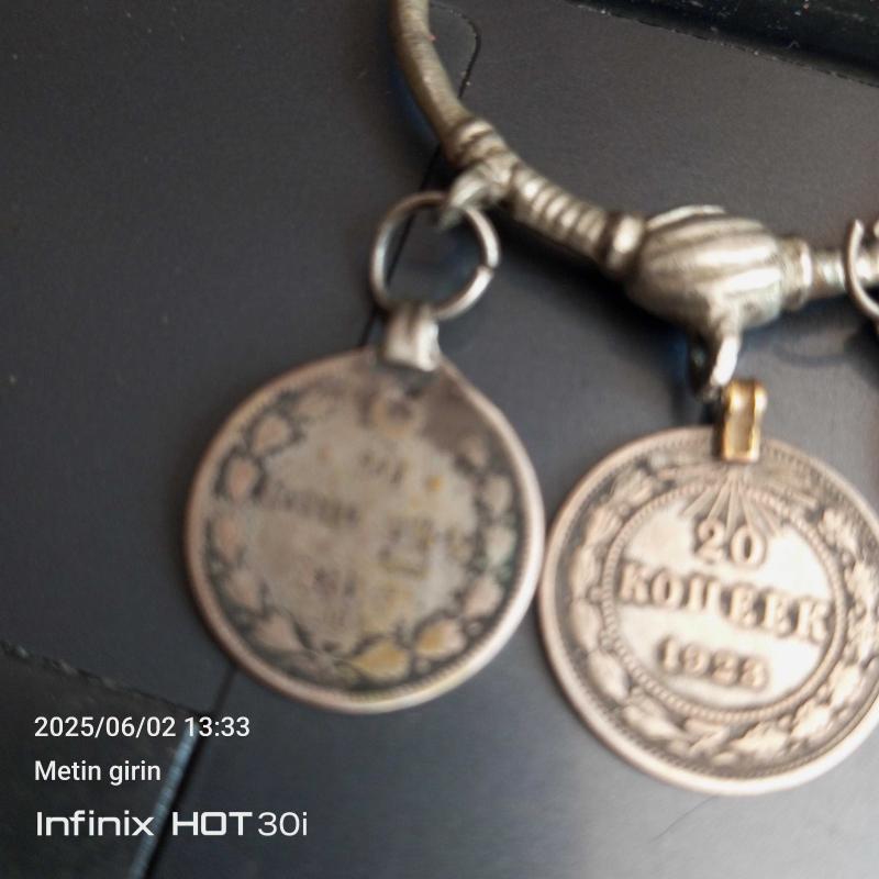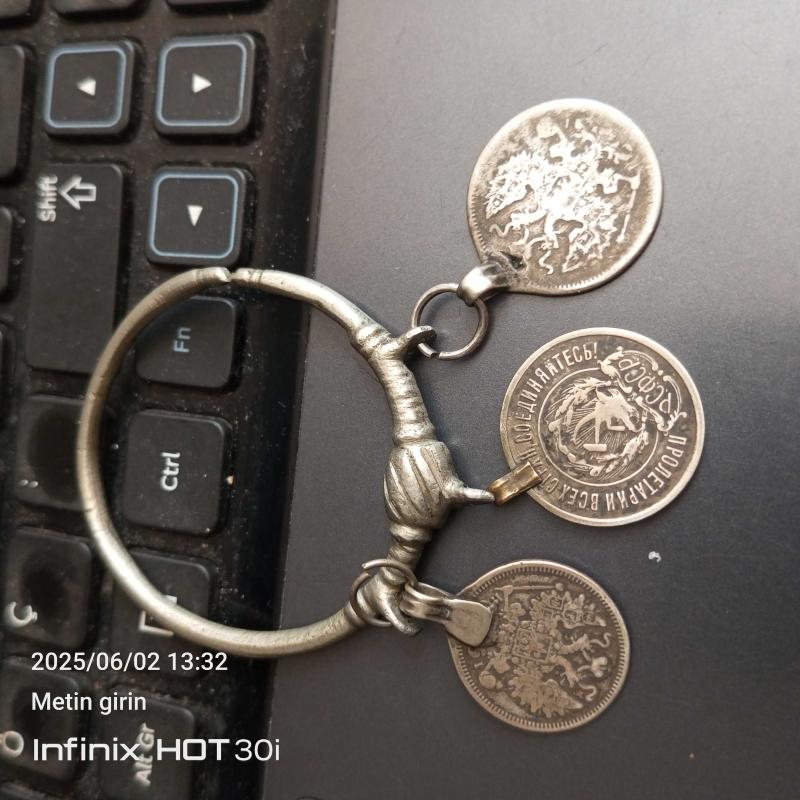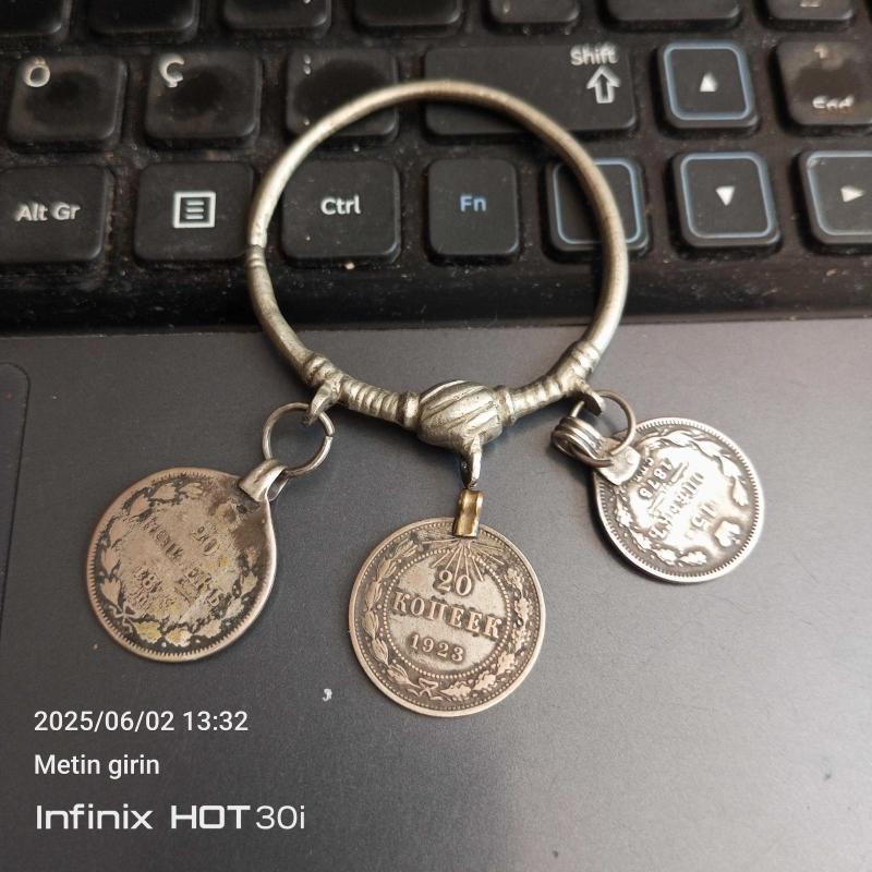 1827-1923 arası 3 adet gümüş para ve işlemeli halkadan oluşan gerdanlık kolye, en son 10 ay önce güncellenmiştir.