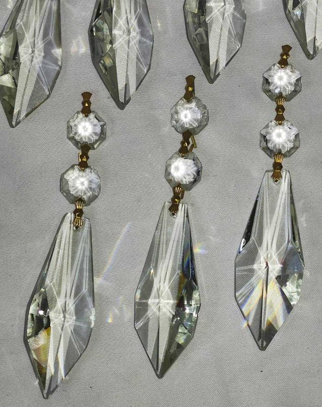 18377- 7 ADET ŞEFFAF KRİSTAL KALEM AVİZE TAŞI + 14 ADET 16 MM OPTAGON AVİZE TAŞI KALEM AVİZE TAŞI ENİ 2.7 CM YÜKSEKLİK 7.3 CM OPTAGON ÇAPI 16 MM