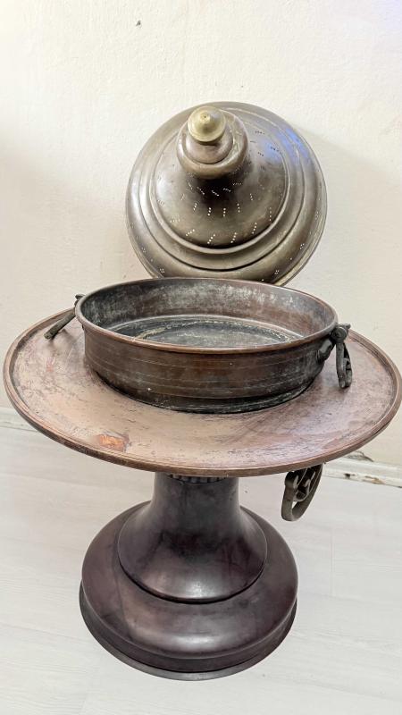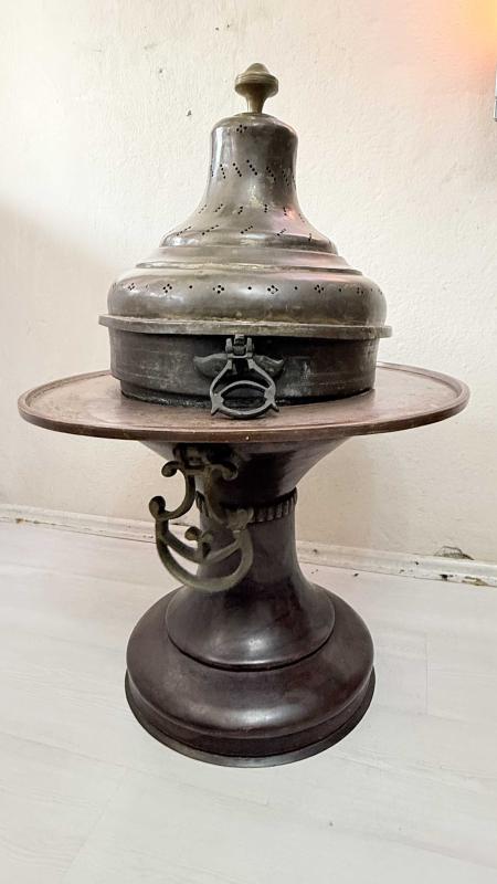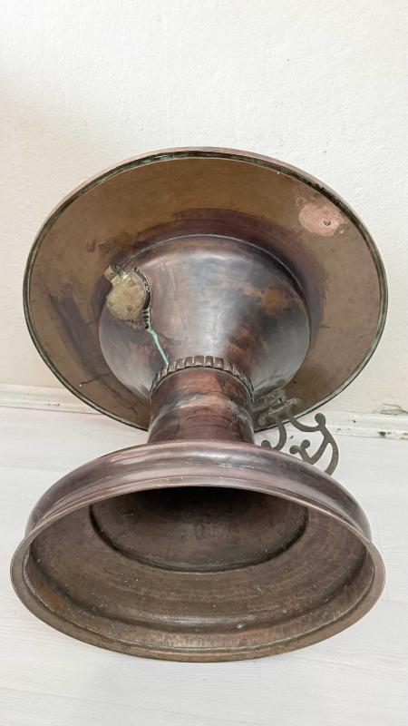 Nadirin nadiri gerçek bir antika 18 yy gerçek insiyalı damgalı tarihli paşa mühürlü paşa mangalı 175 yaşında 1850 tarihli usta damgalı padişah mangalı çok ağır etli dev boyda bakır 90 cm boyunda tam koleksiyonluk bi Nadide eser