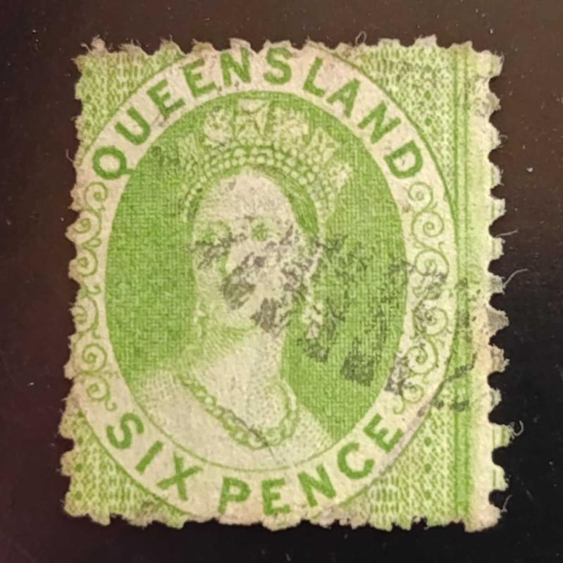 1860-63 İngiltere Sömürge Queensland , Kraliçe Victoria, 6d yeşil, en son 2 gün önce güncellenmiştir.