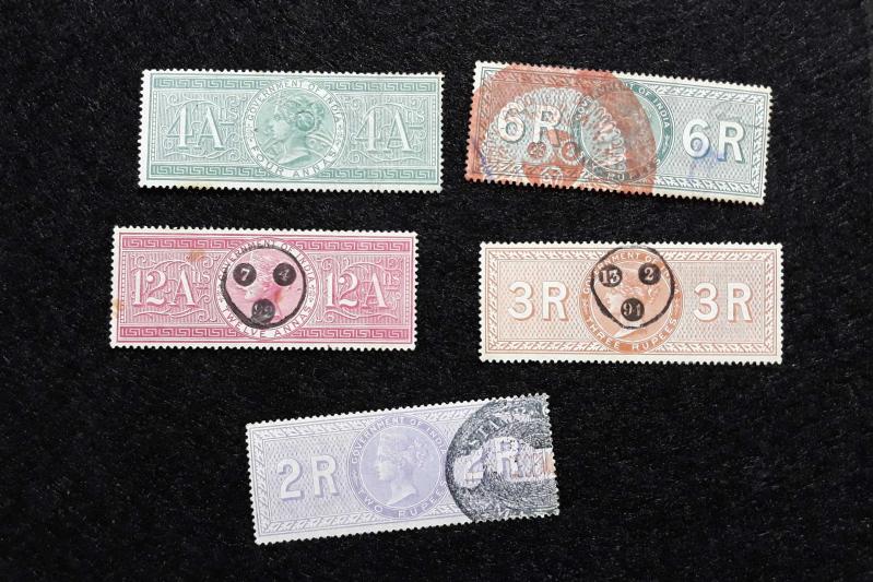 1866 İNGİLTERE Sömürgesi Hindistan Kraliçe Victoria Damgalı Fiskal 5 Adet Lot