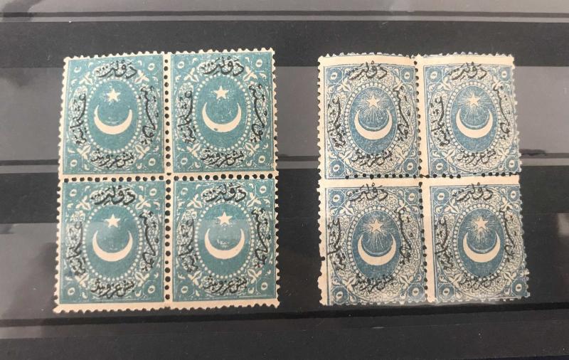 1868 AYYILDIZLI ( DULOZ ) POSTA PULLARI 2.TİP KATALOG NO 50 ( 4 LÜ BLOK - KOYU VE AÇIK RENK BASKI - ERÖRR )