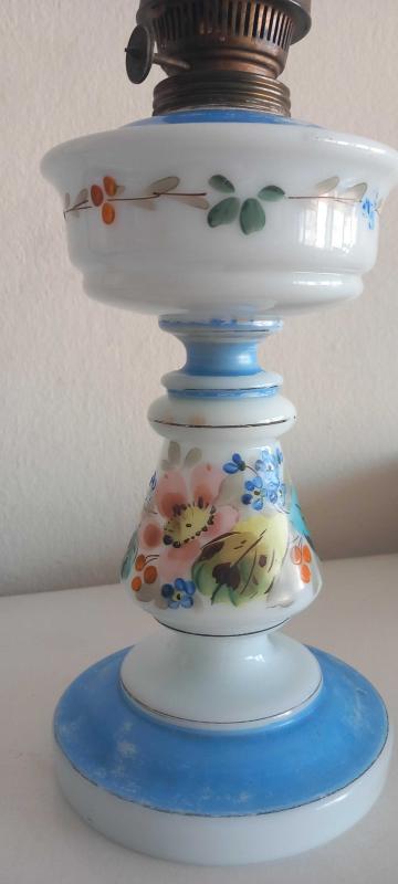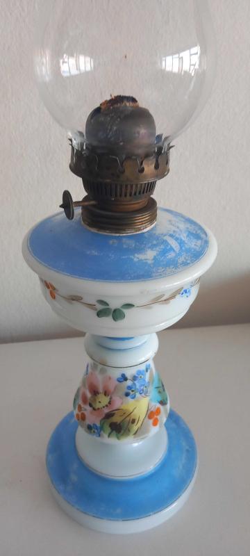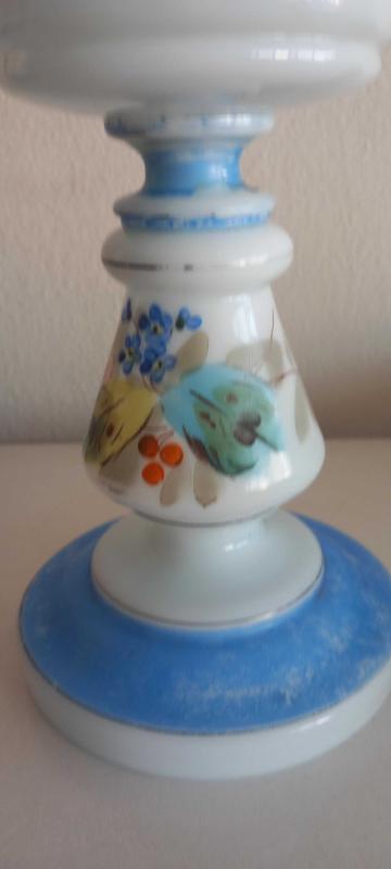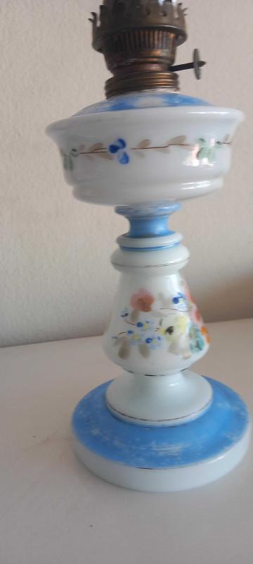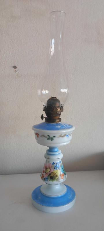 1870 lerin antika fransızların osmanlı pazarına yaptığı fransız kopartma opalin gaz lambası tamamen el boyamasıdır üst camı yenidir yalıdan çıkma ölçü resimde mevcut sağlamdır