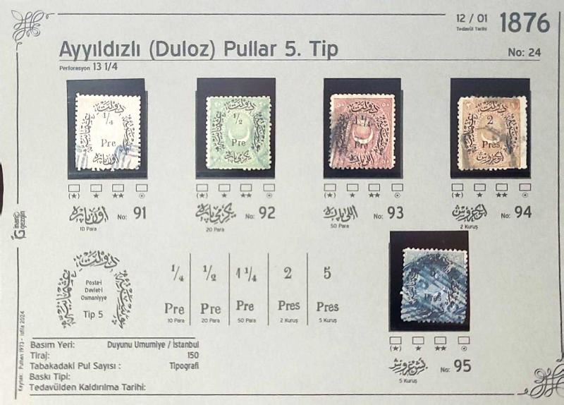 1876 Ayyıldızlı Duloz Pullar 5. Tip İsfila 91-95 Damgalı Tam Seri, 1 yıl önce satışa sunulmuştur.