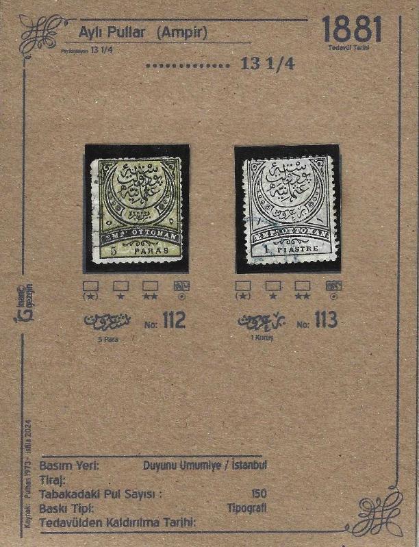 1881 Aylı Pullar Ampir İsfila 112-113 DAmgalı Tam Seri Özel Hazırlanmış havidli kartelasında gönderimi yapılacaktır. Fotoğraf Stok Fotoğraf olabilir. Kesinlikle Eşit kondisyon Ürün Gönderilecektir. Diğer ürünlerimize bakmanızı öneririz.