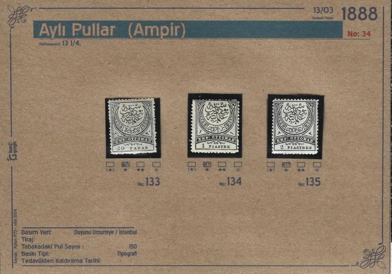 1888 Aylı Pullar Ampir İsfila 133-135 Damgasız Şarniyerli Tam SEri, 12 gün önce satışa sunulmuştur.