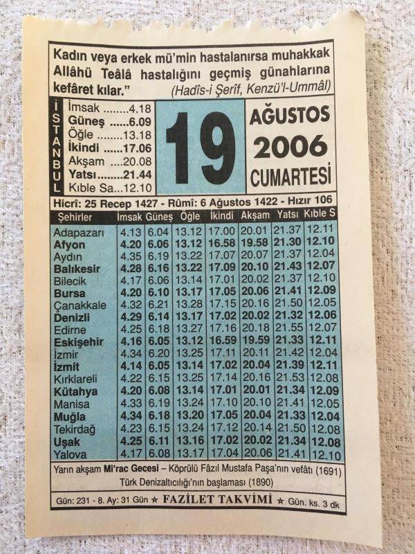 19 AĞUSTOS 2006-TAKVİM YAPRAĞI-DOĞUM GÜNÜ HEDİYESİ-FAZİLET TAKVİMİ, en son 8 ay önce güncellenmiştir.