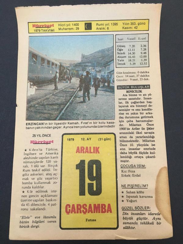 19 ARALIK 1979 -TAKVİM YAPRAĞI-DOĞUM GÜNÜ HEDİYESİ-HÜRRİYET TAKVİMİ,ÇOCUĞA İSİM ,TARİH SOHBETİ HAVUZ MACERASI,AHMET EMİN YALMANIN ÖLÜMÜ 1972,YUNANİSTANA TÜRKİYENİN YARDIMI 1940,HATTAT YESARİNİN ÖLÜMÜ 1798, en son 8 ay önce güncellenmiştir.