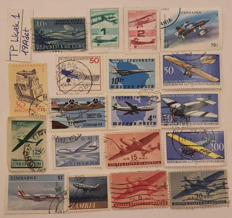 19 Adet Uçak Temalı Pul Koleksiyonu Damgalı Çeşitli Ülke Pulları Küba, Tanzanya, Amerika, Macaristan, Zambia vs. pulları, 2 gün önce satışa sunulmuştur.