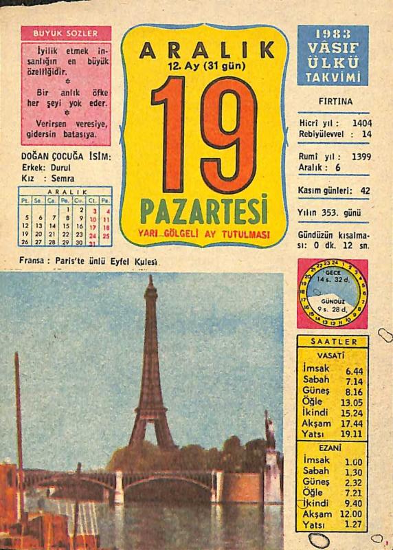 19 Aralık 1983 Takvim Yaprağı - Doğum Günü Hediyesi EFMN13703, en son 18 gün önce güncellenmiştir.