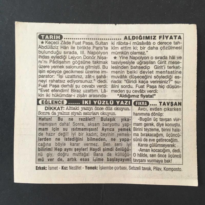 Gazeteler,dergiler,kitaplar harika hediyelerdir.Otantik,orijinal,nadir ve eski gazeteler,dergiler,kitaplar,efemeralar,objeler.Gazeteler bir aynadır.Kitaplar sadece okumak için değil birlikte yaşamak içindir . Kelimeler , notalar ,  sayılar kardeştirler.Kitaplar insanı binbir gözlü yapar.