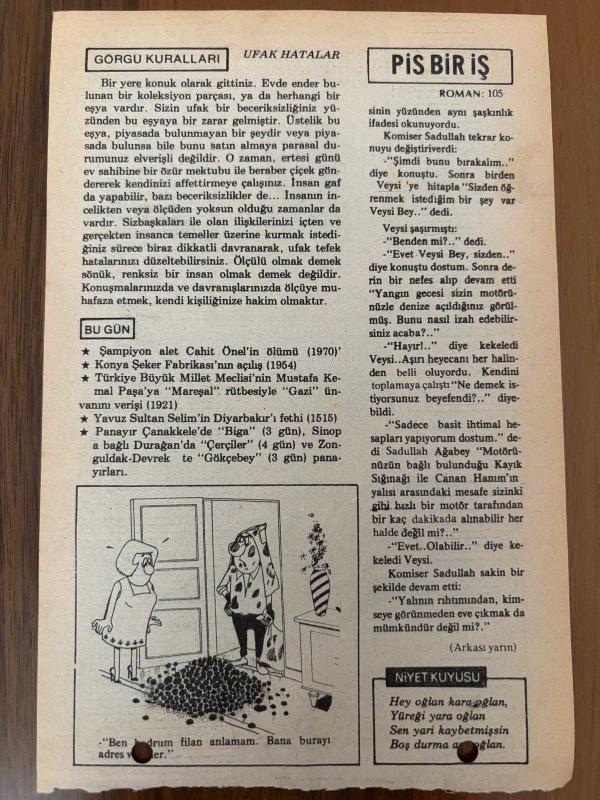 19 EYLÜL 1979 - TAKVİM YAPRAĞI - DOĞUM GÜNÜ HEDİYESİ - HÜRRİYET TAKVİMİ - PİS BİR İŞ ROMANI - Şampiyon alet Cahit Önel'in ölümü (1970) - Konya Şeker Fabrikası'nın açılış (1954) - Yavuz Sultan Selim'in Diyarbakır'ı fethi (1515) başlıklı ürün, Efemera, Müzik, Sinema > Belge ve Evraklar > Takvimler kategorisi altında İkinci El olarak satılmaktadır.