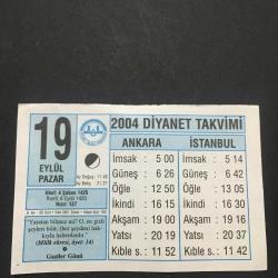 19 EYLÜL 2004-TAKVİM YAPARAĞI-DOĞUM GÜNÜ HEDİYESİ-DİYANET TAKVİMİ,GAZİLER GÜNÜ,BİR AYET-BİR YORUM