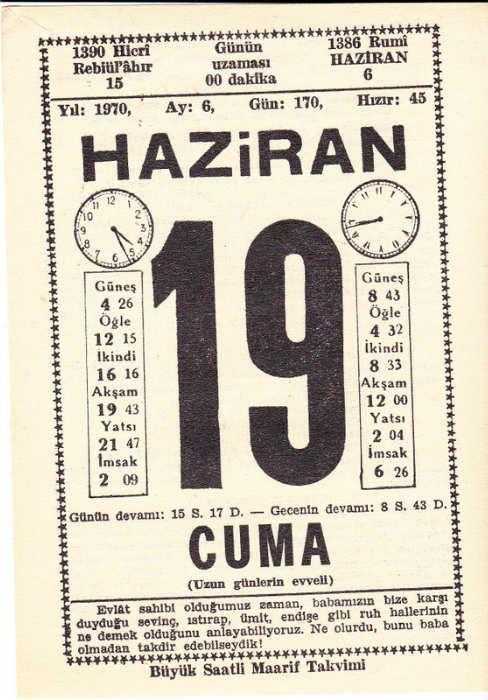 19 HAZİRAN 1970 SAATLİ MAARİF TAKVİMİ YAPRAĞI, en son 1 yıl önce güncellenmiştir.