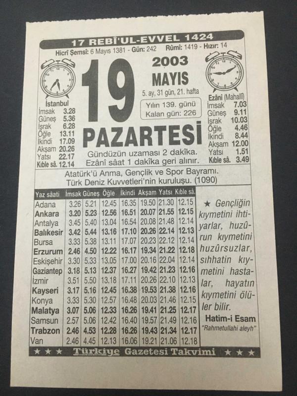 19 MAYIS-TAKVİM YAPRAĞI-DOĞUM GÜNÜ HEDİYESİ-TÜRKİYE GAZETESİ TAKVİMİ,ATATÜRK Ü ANMA VE GENÇLİK SPOR BAYRAMI,TÜRK DENİZ KUVVETLERİNİN KURULUŞU,1090,ABD KÜLTÜRÜ ŞİDDET KÖRÜKLÜYOR başlıklı ürün, Efemera, Müzik, Sinema > Belge ve Evraklar > Takvimler kategorisi altında İkinci El olarak satılmaktadır.