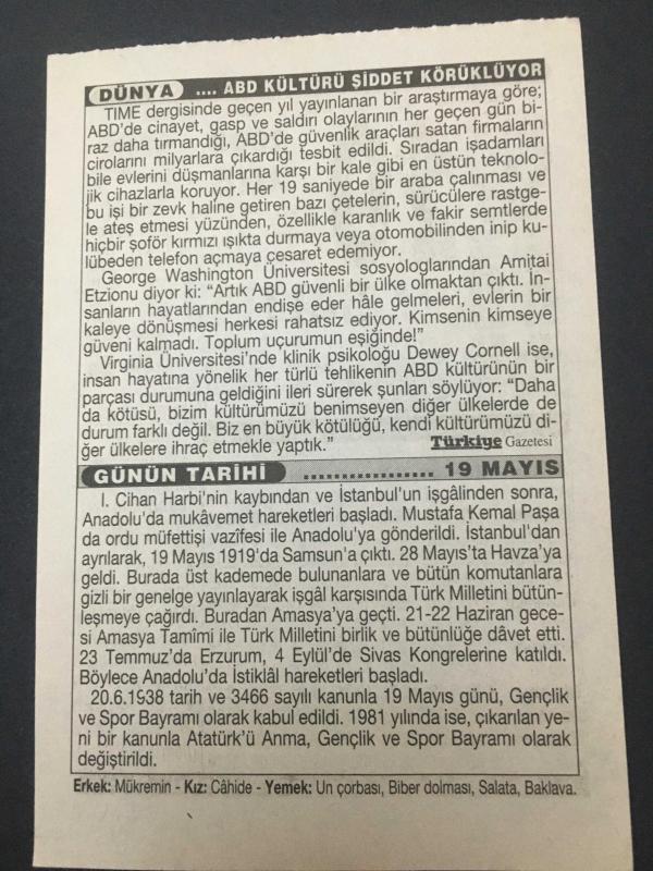 19 MAYIS-TAKVİM YAPRAĞI-DOĞUM GÜNÜ HEDİYESİ-TÜRKİYE GAZETESİ TAKVİMİ,ATATÜRK Ü ANMA VE GENÇLİK SPOR BAYRAMI,TÜRK DENİZ KUVVETLERİNİN KURULUŞU,1090,ABD KÜLTÜRÜ ŞİDDET KÖRÜKLÜYOR, en son 8 ay önce güncellenmiştir.
