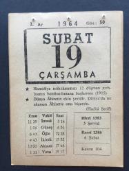 19 ŞUBAT1964 -TAKVİM YAPRAĞI-DOĞUM GÜNÜ HEDİYESİ,HAMİDİYE İSTİHKAMIMIZI 12 DÜŞMAN ZIRHLISININ BOMBARDANA BAŞLAMASI 1915,CEMAATLE NAMAZ, en son 8 ay önce güncellenmiştir.