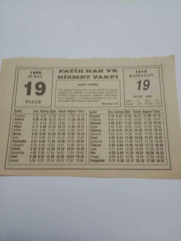 19 Şubat 1995-Orijinal Takvim Yaprağı-Doğum Günü-Söz,Nişan,Nikâh,Düğün ve Önemli Günler Hediyesi-Fatih Hak ve Hizmet Vakfı-Ayet/Hadis(Hucurat:13)-Zekat Kimlere Verilir?-Yunus Emre-Sakız Böreği, en son 5 ay önce güncellenmiştir.