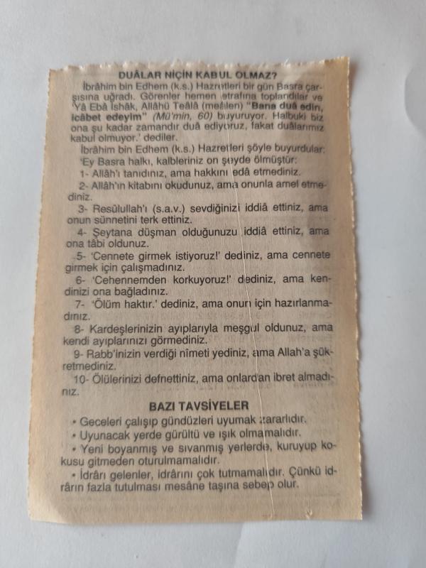 19 Şubat 2009-Orijinal Takvim Yaprağı-Doğum Günü-Söz,Nişan,Nikâh,Düğün ve Önemli Günler Hediyesi-Fazilet Takvimi-Ayet(Hadis)(Mü'min Suresi, ayet 60 )-İbrahim bin Edhem (k.s.) hazretlerinin vefatı (779)-Dualar Niçin Kabul Olmaz?-Bazı Tavsiyeler başlıklı ürün, Efemera, Müzik, Sinema > Belge ve Evraklar > Takvimler kategorisi altında İkinci El olarak satılmaktadır.