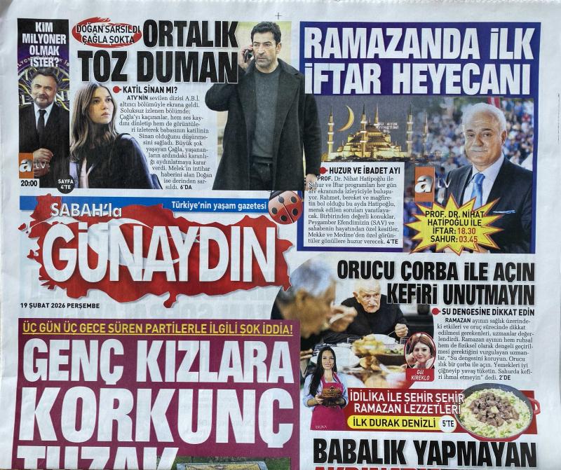 19 Şubat 2026 SABAHLA GÜNAYDIN GAZETESİ Doğum Günü Gazetesi (19.02.2026) Doğumgünü Hediyesi | Sıradışı Hediye | Özel Gün Hediyeleri | GAZETE ARŞİVİ | ATV'nin Sevilen Dizisi ABİ | RAMAZAN'DA İLK İFTAR HEYECANI | İdilika İle Şehir Şehir Ramazan Lezzetleri | BABALIK YAPMAYAN AKPINAR'A 6 MİLYON CEZA | 81 Sanatçıdan Mektuplu Ültimatom : UKRAYNA HASSASİYETİNİ GAZZE'YE DE GÖSTERİN | Türk Dizilerine Dev Destek, en son 4 saat önce güncellenmiştir.