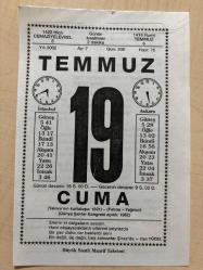 19 TEMMUZ 2002 - TAKVİM YAPRAĞI - DOĞUM GÜNÜ HEDİYESİ - BÜYÜK SAATLİ MAARİF TAKVİMİ - CAN YÜCEL - ANDRE GİDE - FUAT BAYRAMOĞLU - AHMET NECDET - DR. SUNA TANALTAY - YAHYA KEMAL