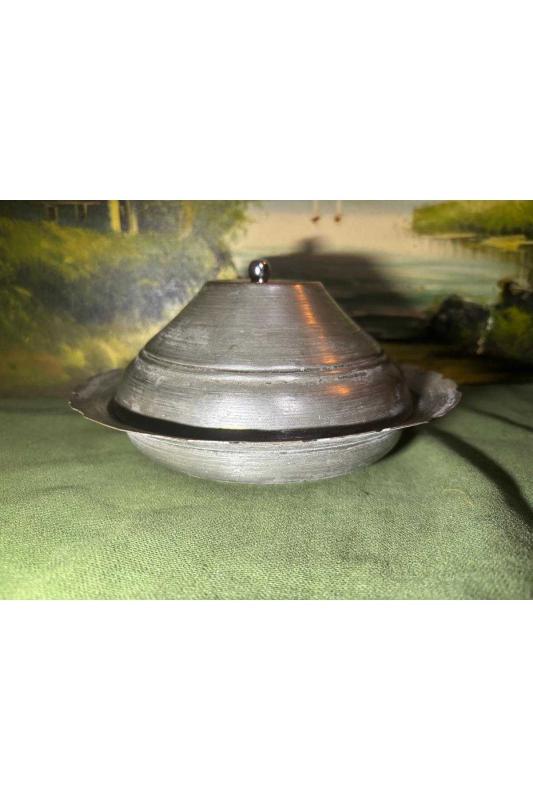 19 cm çapında 9,5 cm yüksekliğinde antika bakır kapaklı yemek tası başlıklı antika/koleksiyon objesinin menşei belirtilmemiştir. Objenin ait olduğu dönem bilinmeketedir.