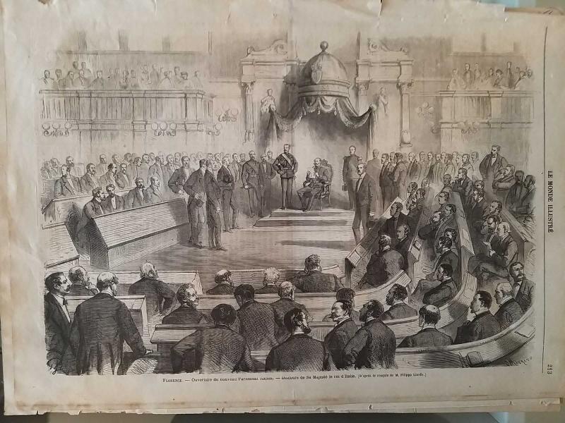 19.yy GRAVÜR "27CM X 37CM"İTALYA FLORANSA YENİ PARLEMENTO AÇILIŞI başlıklı antika/koleksiyon objesinin menşei belirtilmemiştir. Objenin ait olduğu dönem bilinmeketedir.