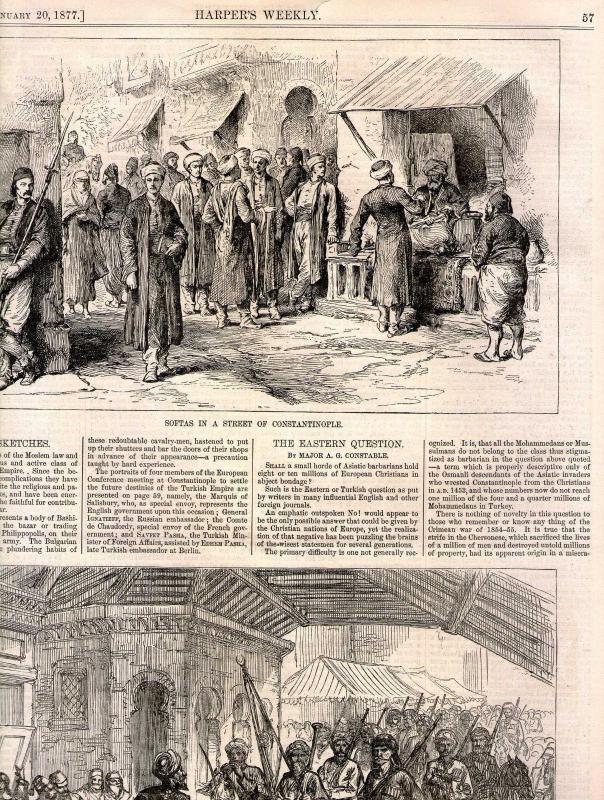 19.yy GRAVÜR OSMANLI 27X37CM İSTANBUL SOFTALARI VE BAŞIBOZUK ASKERLER ALTALTA GRAVÜRLER