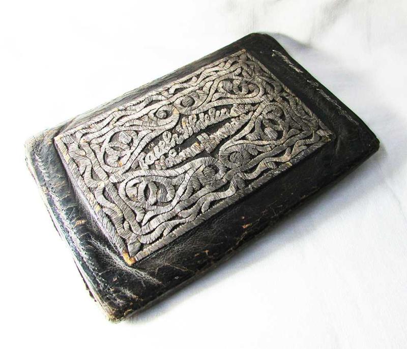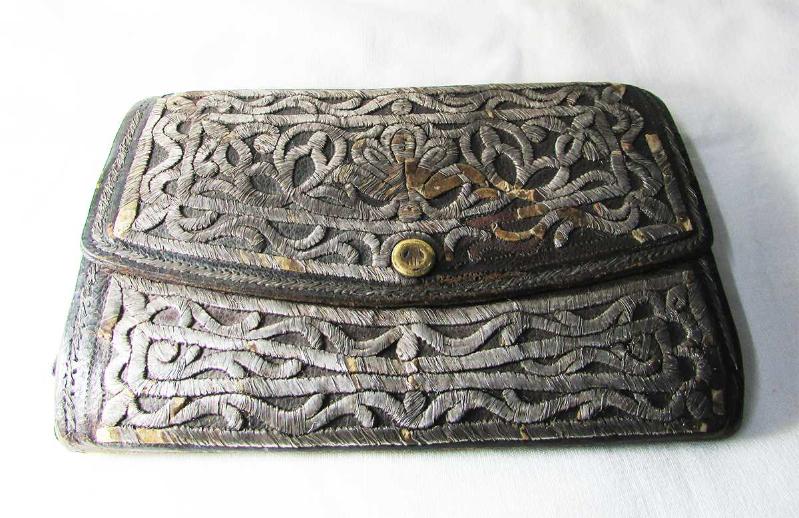 1800 LÜ YILLARDAN, HAKİKİ KUZU DERİSİNDEN KATLANABİLİR VE GÖZLÜ OLARAK YAPILMIŞ, DIŞ YÜZEYLERİ GÜMÜŞ TEL SIRMA İLE HARİKA EL İŞİ İLE İŞLENİP BEZENMİŞ, SÜPER GÜZELLİKTE OSMANLI YABANCI AZINLIK EL ÇANTASI, ARKA YÜZÜNDE YİNE TEL SIRMA İLE İLK SAHİBİNİN ADI SOYADI YAZILI, SAĞLAM VE YAŞINA GÖRE YÜKSEK KONDÜSYONDA, DETAYLAR ÜRÜN RESİMLERİNDE, KAPALI HALDE ÖLÇÜ 10,5cmx15,5cm ""KOLEKSİYONLARA""