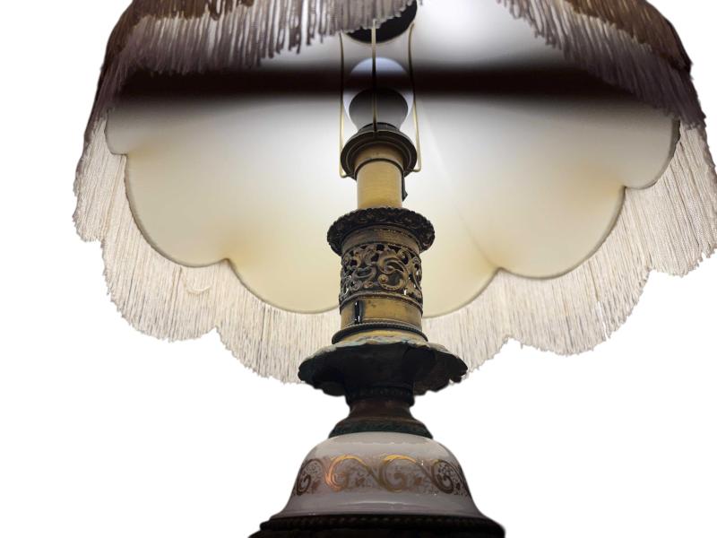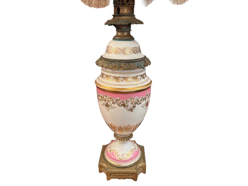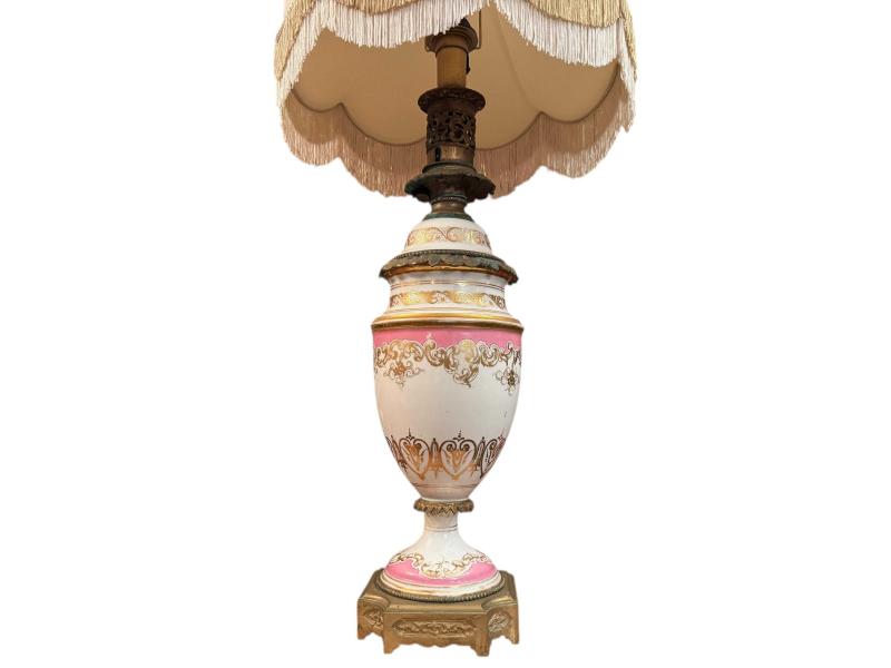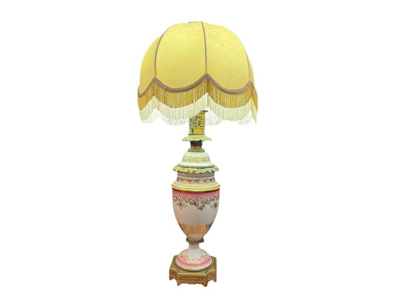1900 başları Fransız gaz lambası formunda pirinç ve porselen'den 85 cm boyunda abajur, 4 gün önce kitantik’te satışa sunulmuştur.