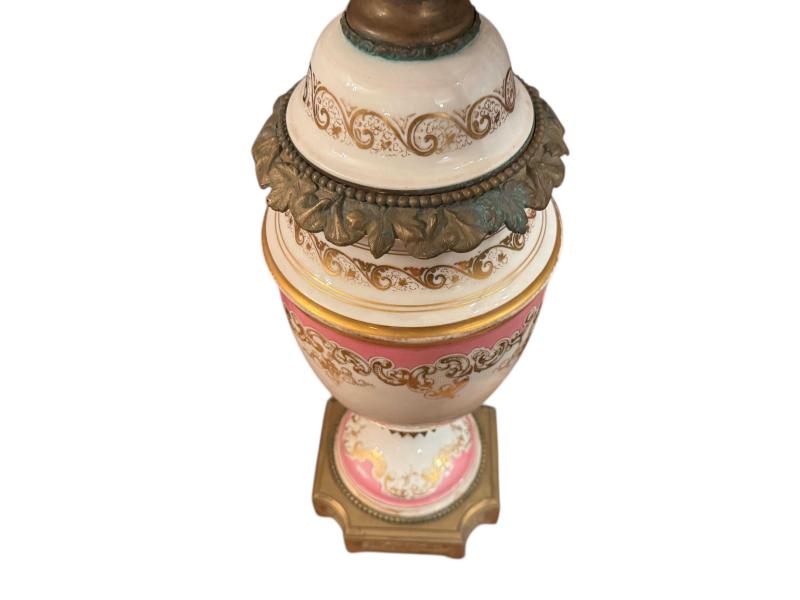 1900 başları Fransız gaz lambası formunda pirinç ve porselen'den 85 cm boyunda abajur başlıklı antika/koleksiyon objesi Avrupa menşe’lidir. 1920-1940 arası dönemine aittir.