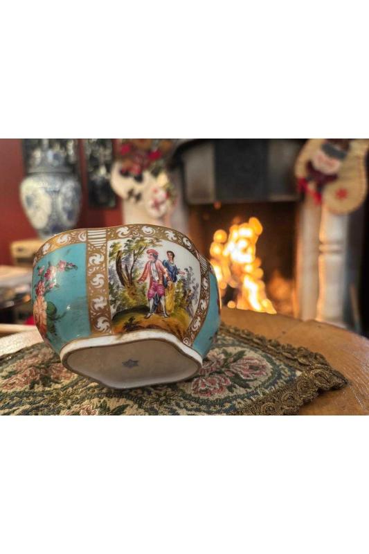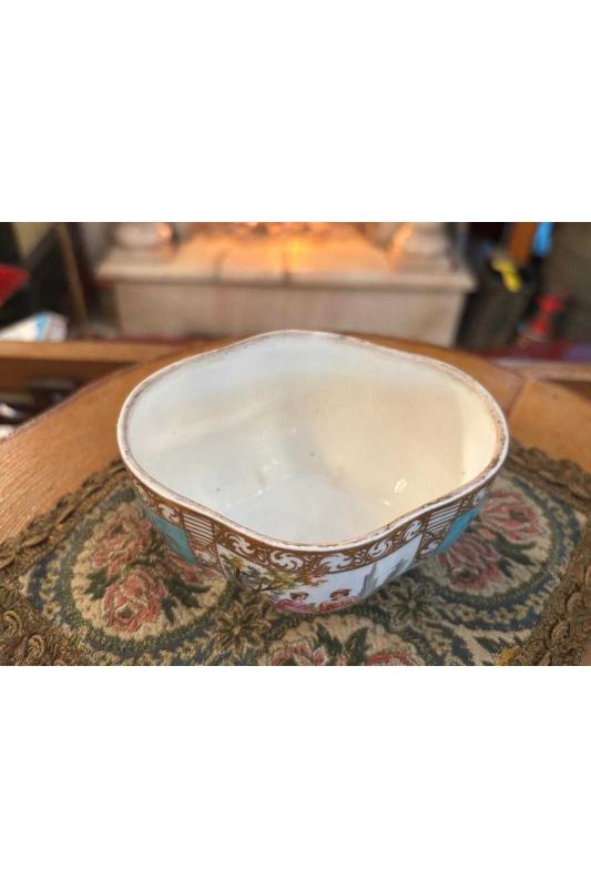 1900 başları Sevres tarzı Avrupa porselen sunumluk 11 cm 9,5 cm 6 cm ölçülerinde başlıklı antika/koleksiyon objesinin menşei belirtilmemiştir. Objenin ait olduğu dönem bilinmeketedir.