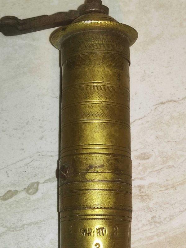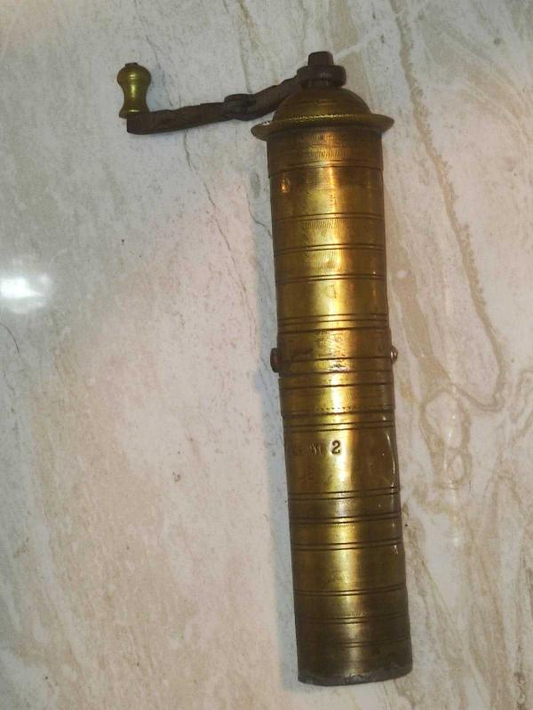 19056-ESKİLERDEN GARANTİ DAMGALI PİRİNÇ KAHVE DEĞİRMENİ başlıklı antika/koleksiyon objesi Türkiye menşe’lidir. 1950-1999 arası dönemine aittir.