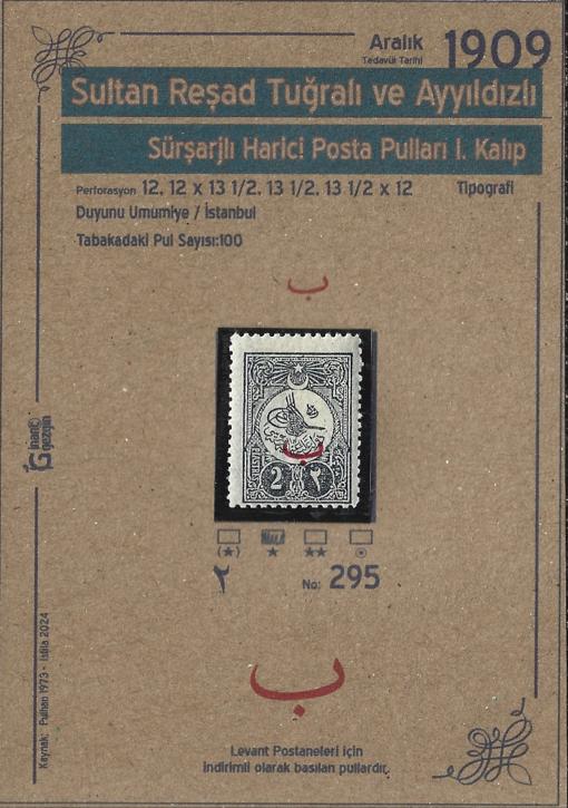 1909 Sultan Reşad Tuğralı ve Ayyıldızlı, Sürşarjlı Harici Posta Pulları I.Kalıp İsfila 295 DAmgasız Şarniyerli, 17 gün önce satışa sunulmuştur.
