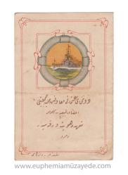 Osmanlıca "Donanma-yı Osmânî Muâvenet-i Milliye Cemiyeti Azasına Mahsus Taahhüd ve Hüviyet [Kimlik] Varakası", Üsküdar Şubesi'nden Mülâzım Sâlih Efendi vâlidesine âit, Teşrinisani 1325 [1910] târihli Üsküdar Şubesi 5 Teşrin-i sani 1326 (1910) tarihli, Şube Heyeti tarafından üç adet mühürlü ve aidat mühürleri vurulmuş haliyle. 14x9 cm, açılır iki sayfa.