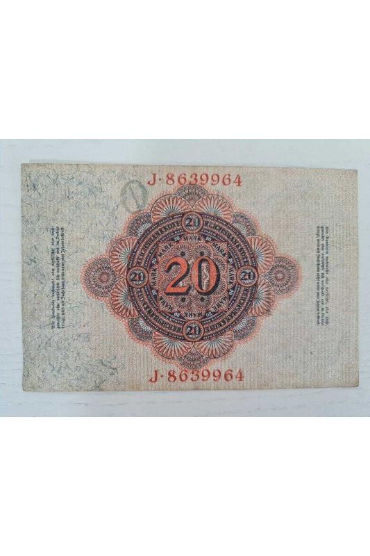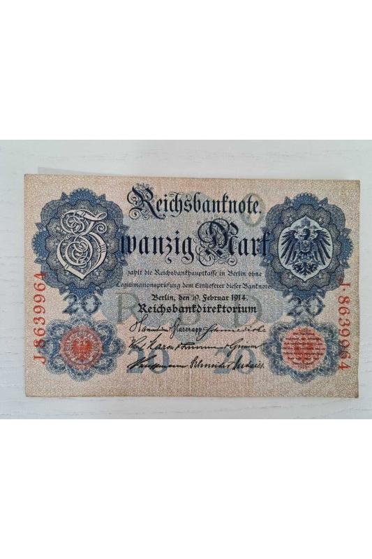 1914 YILINA AİT ALMAN PARASI, ALMAN 20 MARK TARİHİ, ESKİ ALMAN PARASI ; ORİJİNAL DÖNEMİNE AİT ; TEMİZ DURUMDA ; KOLEKSİYONLUK 1914 TARİHLİ ALMAN PARASI ; ALMAN PARA BANKNOT ;