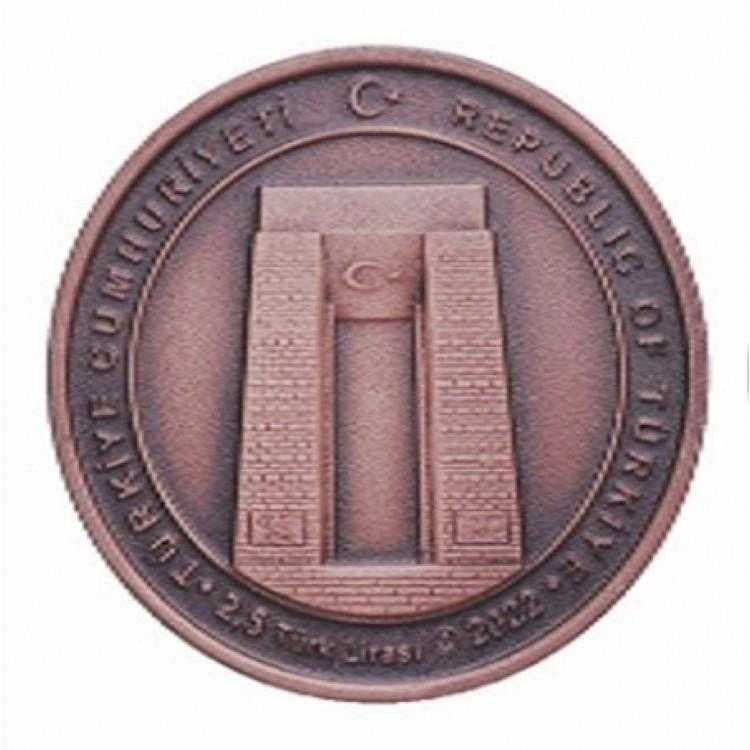 Hatıra Para Adı 1915 ÇANAKKALE KÖPRÜSÜ Nominal Değeri 2,5 Türk Lirası / TRY Metal Bronz /Bronze Çap 38,61 mm Ağırlık 23,33 ± %1 gram / g Baskı Özelliği Okside / Oxide Kenar Tırtıllı/Milled Maksimum Baskı 10.000 Adet/Pcs. Tedavül Süresi 21.03.2024 Güncel Tedavül Süresi 31.12.2024