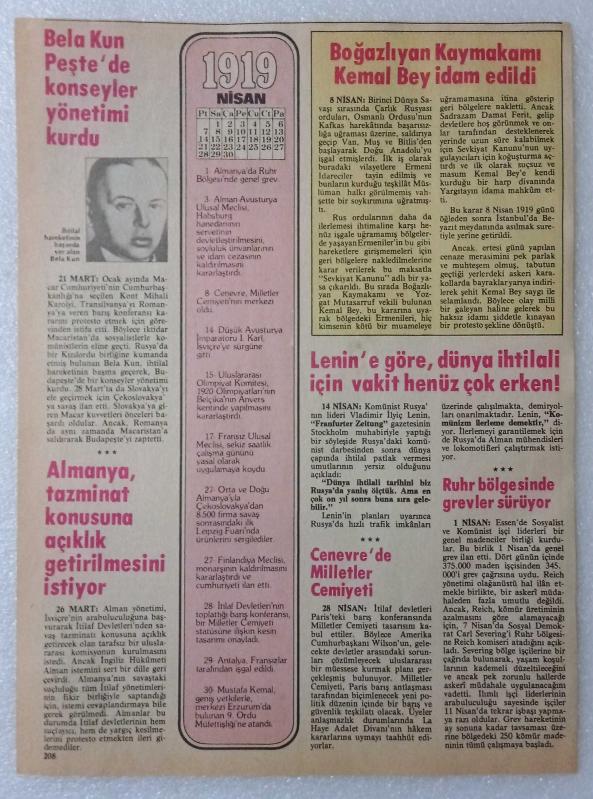 1919 = ( Mart-nisan ) - Sadarette Damat Ferit Paşa var • Boğazlıyan kaymakamı Kemal bey idam edildi • Cenevre'de Milletler meclisi •Alman savunma bakanı isyancılar için vur emri verdi ~ [ ÇİFT TARAFLI ], 22 gün önce satışa sunulmuştur.