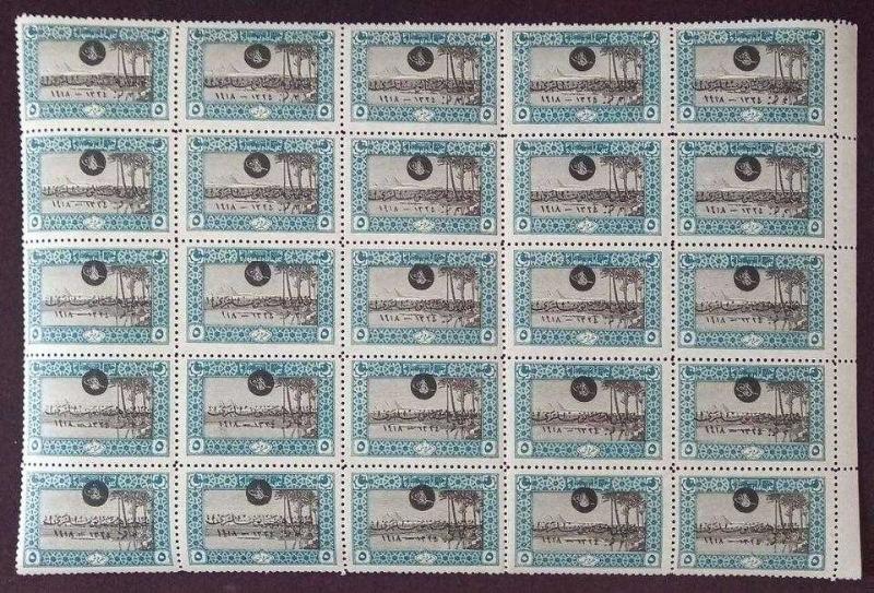 1919 SULTAN VAHİDEDDİN CULUS 5 KURUŞ 25Lİ BLOK ERÖRLÜ MNH ,1 PULDA 1919 TARİHİNDE 1 EKSİK ERRÖRLÜ BLOK SÜPER KONDİSYONDA,1000 tl katalog hafif şarniyerli ama çoğu mnh.