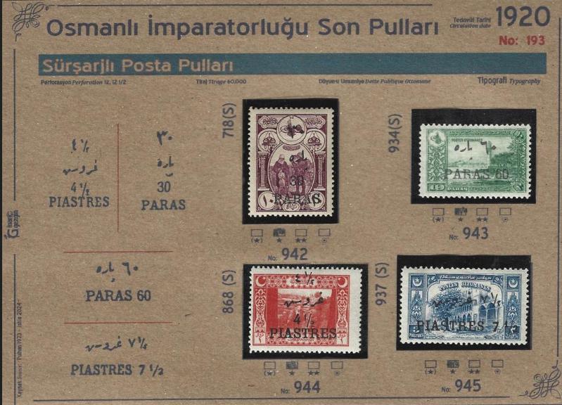 1920 Osmanlı İmparatorluğu Son Pulları, Sürşarjlı Posta Pulları, İsfila 942 - 945 Damgasız Şarniyerli Tam Seri, 16 gün önce satışa sunulmuştur.