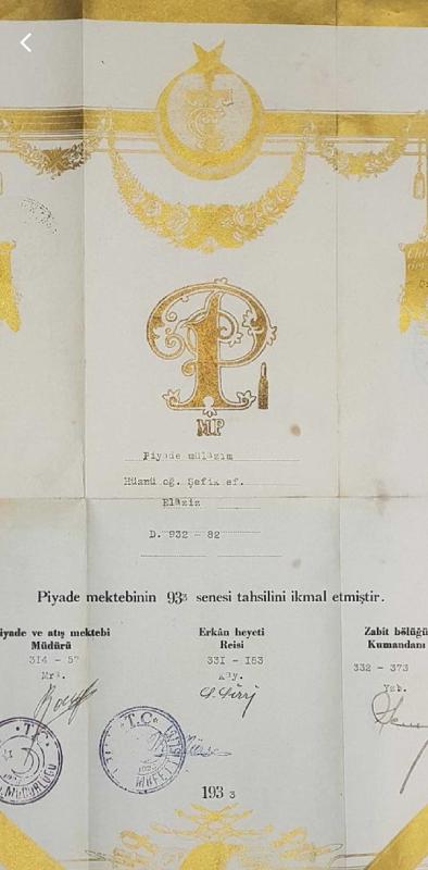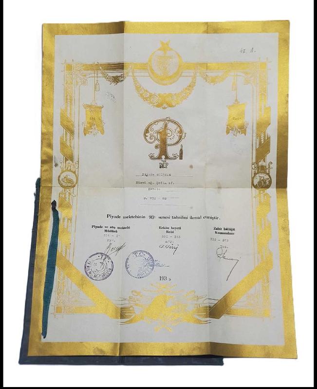 Yaklaşık 100 yıllık piyade diploması, Orjinal kabında…altın yaldızlı büyük boy, katlanan diploma…kusursuz