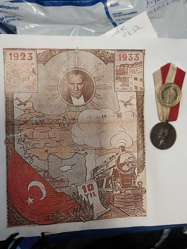 1923, 1933 10. Yıl Madalyonu. TÜRKİYE CÜMHURİYETİ 1923 1933 ONUNCU YIL HATIRASINA BASILAN VE TÖRENLERE KATILANLARA VERİLEN KOLEKSİYONLUK MADALYON..DARPHANE TARAFINDAN SADECE 200 BİN ADET BASILDIĞI İÇİN PİYASA DA BİTMEK ÜZERE OLAN KOLEKSİYONLUK BİR ÜRÜNDÜR.. , Türkiye Cumhuriyeti 10 ncu yıl madalyonu. 1923/1933 Efemerası Fotokopidir., 4 gün önce satışa sunulmuştur.