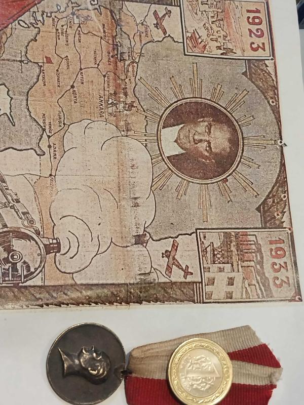 1923, 1933 10. Yıl Madalyonu. TÜRKİYE CÜMHURİYETİ 1923 1933 ONUNCU YIL HATIRASINA BASILAN VE TÖRENLERE KATILANLARA VERİLEN KOLEKSİYONLUK MADALYON..DARPHANE TARAFINDAN SADECE 200 BİN ADET BASILDIĞI İÇİN PİYASA DA BİTMEK ÜZERE OLAN KOLEKSİYONLUK BİR ÜRÜNDÜR..Türkiye Cumhuriyeti 10 ncu yıl madalyonu. 1923/1933 Efemerası Fotokopidir.