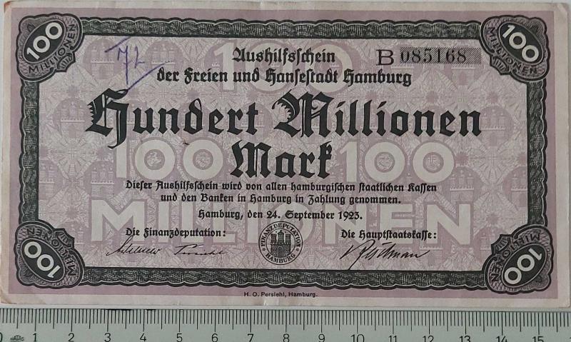 1923 ALMANYA-HAMBURG 100 MİLYON MARK ORİJİNAL KAĞIT PARASIDIR. KONDİSYONU ÇOK ÇOK TEMİZ OLARAK DEĞERLENDİRİLMEKTEDİR. BU TİP PARALARI BÖYLE ORİJİNAL OLARAK BULMAK ÇOK ZORDUR. RESMİNİ GÖRDÜĞÜNÜZ ÜRÜN AYNEN GÖNDERİLİR. TÜM ÜRÜNLERİMİZE BAKMANIZ MENFAATİNİZEDİR. SAYGILARIMIZLA.